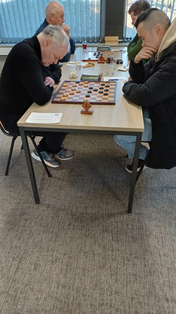 Afgelopen zaterdagmiddag werd er toch een wedstrijd voor de bondscompetitie gespeeld in de Hoofdklasse A. Ondanks code rood- oranje-geel deze week waren de dammers uit Arnhem door de vrieskoud heen gekomen naar Lunteren. Het tweede achttal was compleet vandaag en had ook zin in een potje dammen. Evert Evers hield de openingsspeech en wenste iedereen een gezond en goed damjaar toe. De wedstrijd begon met een 2-0 voorsprong doordat Levien Cysouw zonder te spelen won van no.8 we begrepen dat oud-lid Sander Neutel ontbrak door familieverplichtingen.